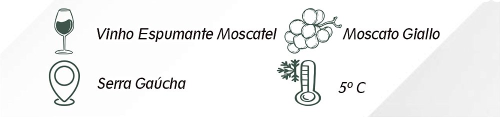 • Harmonização: Este leve e delicado espumante pode ser servido como aperitivo, mas também casa perfeitamente com doces e sobremesas que contenham frutas.
